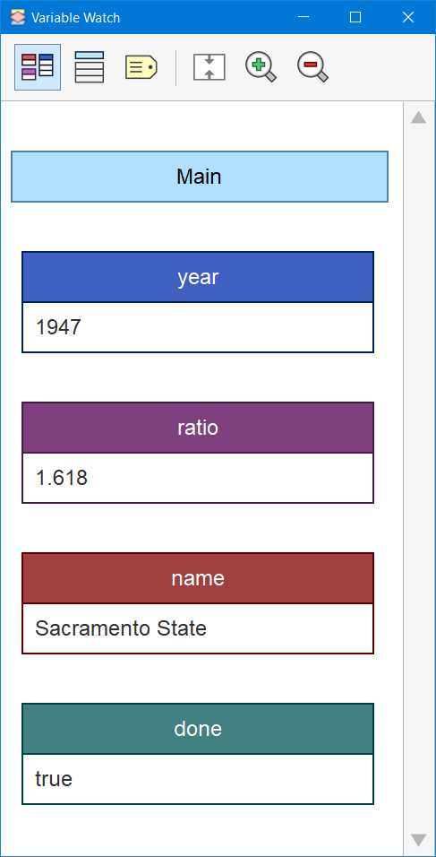 current value. This is not limited to just basic variables. Arrays will be displayed as well.